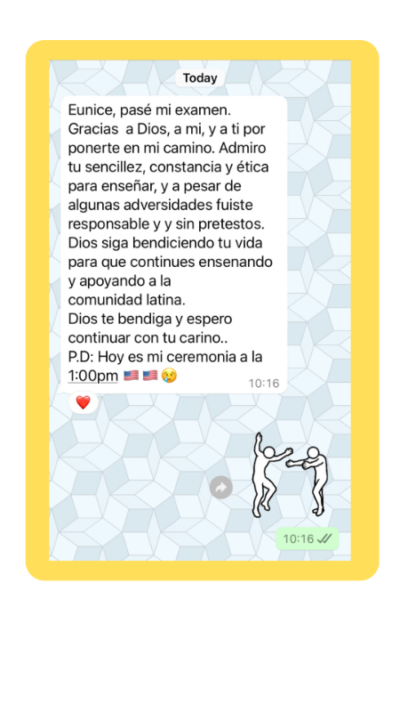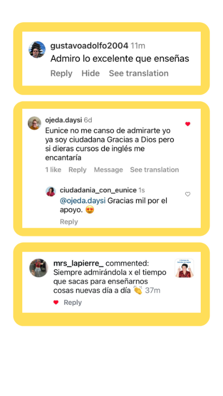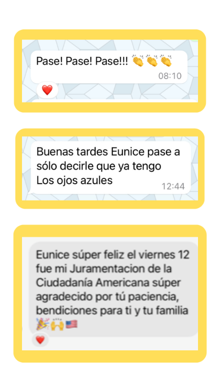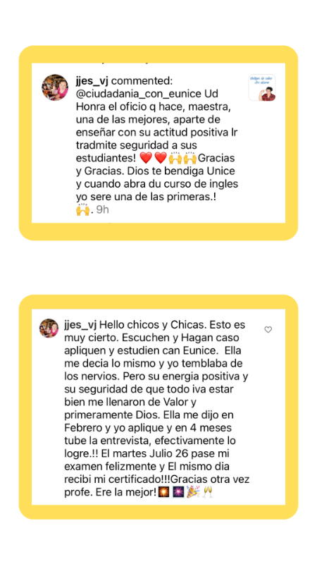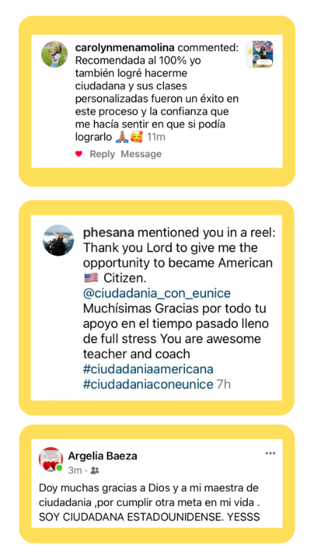 Los resultados mencionados en esta presentación son los resultados de muchos de mis estudiantes del curso de Ciudadanía con Eunice y de ninguna manera son los resultados que obtienen todos.