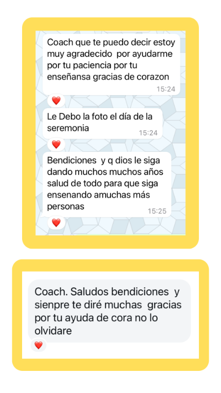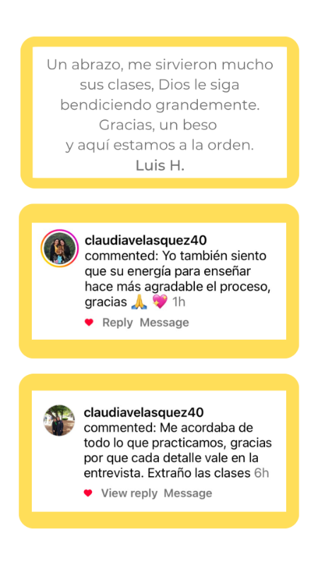 Los resultados que cada estudiante obtiene depende en gran medida del esfuerzo y el tiempo que se le dedique. No conozco tus destrezas, capacidades, recursos, experiencias y por esta razón no te puedo ofrecer ninguna garantía de resultados.